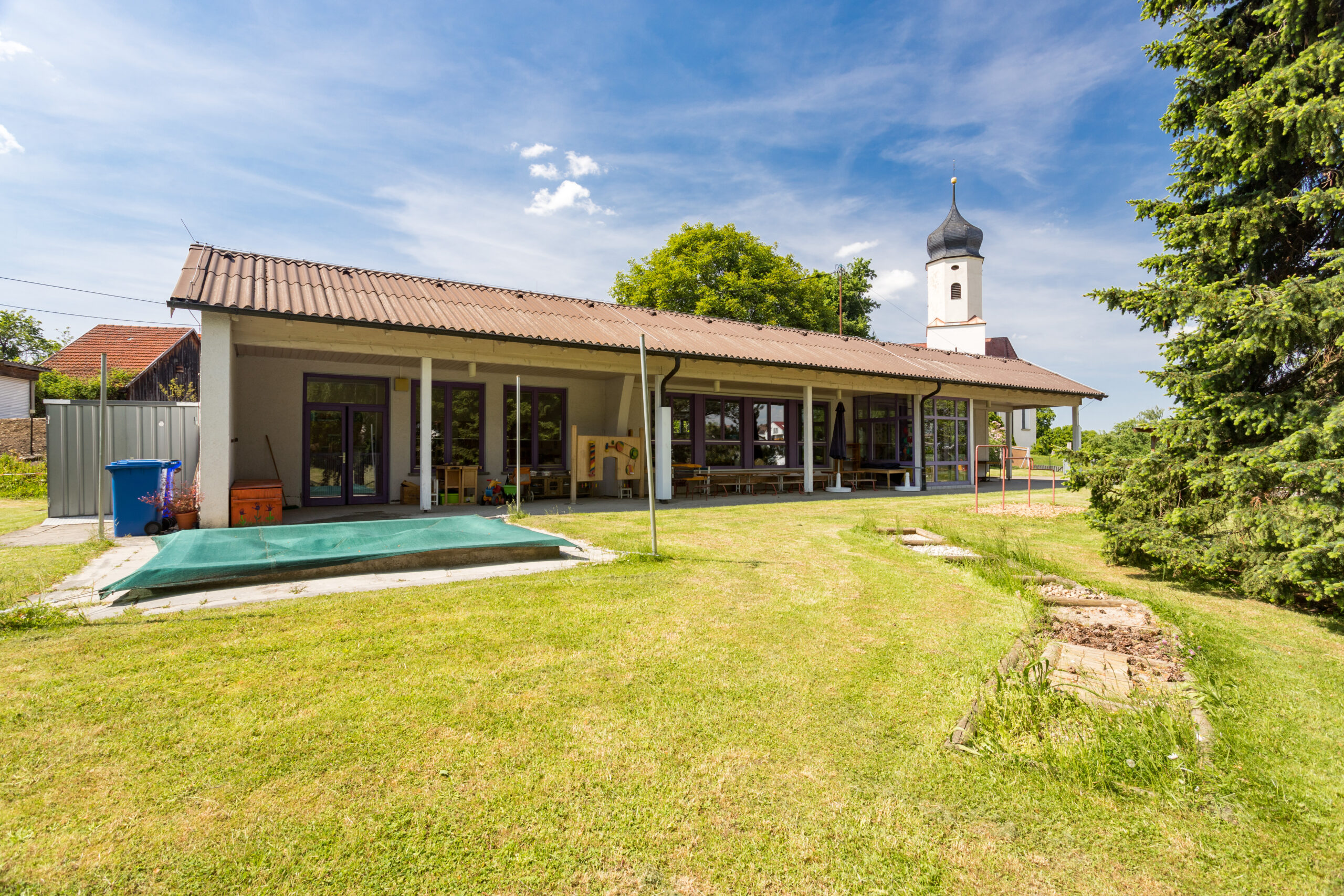 Unser dreigruppiger Kindergarten inkl. Krippengruppe bietet Platz für 57 Kinder im Alter von 1 bis 6 Jahren und bietet verschiedene Betreuungsformen (RG und VÖ) an. Wir verfügen über ein gut funktionierendes Team und befinden uns in einer sehr schönen, naturnahen Lage mit einem weitläufigen Außengelände.